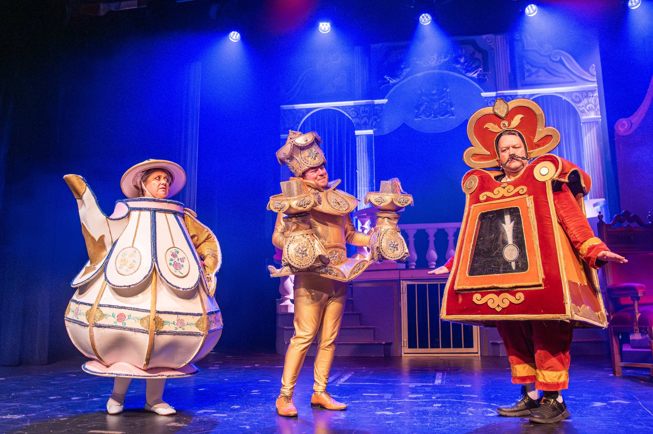 Cogsworth (Stephen Hughes-Alty), Mrs Potts (Jacqui Lewis), and Lumiere (Matthew Higginson) worked together well with just the right mix of humour and heart.